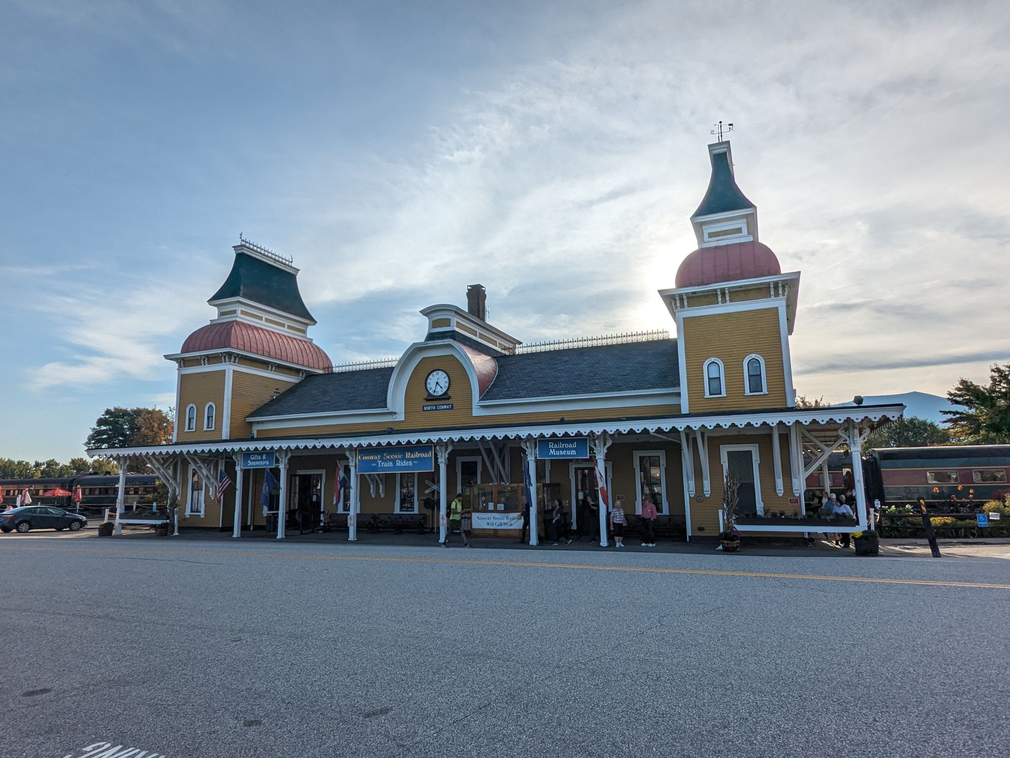 Nach diesem kurzen Stopp fahren wir weitere 2 Stunden nach North Conway. Dort kommen wir gerade rechtzeitig zur Einfahrt der Conway Scenic Railroad in den 1874 gebauten Bahnhof.