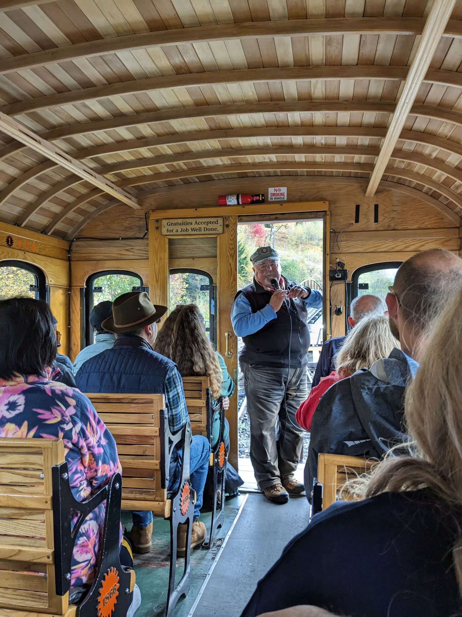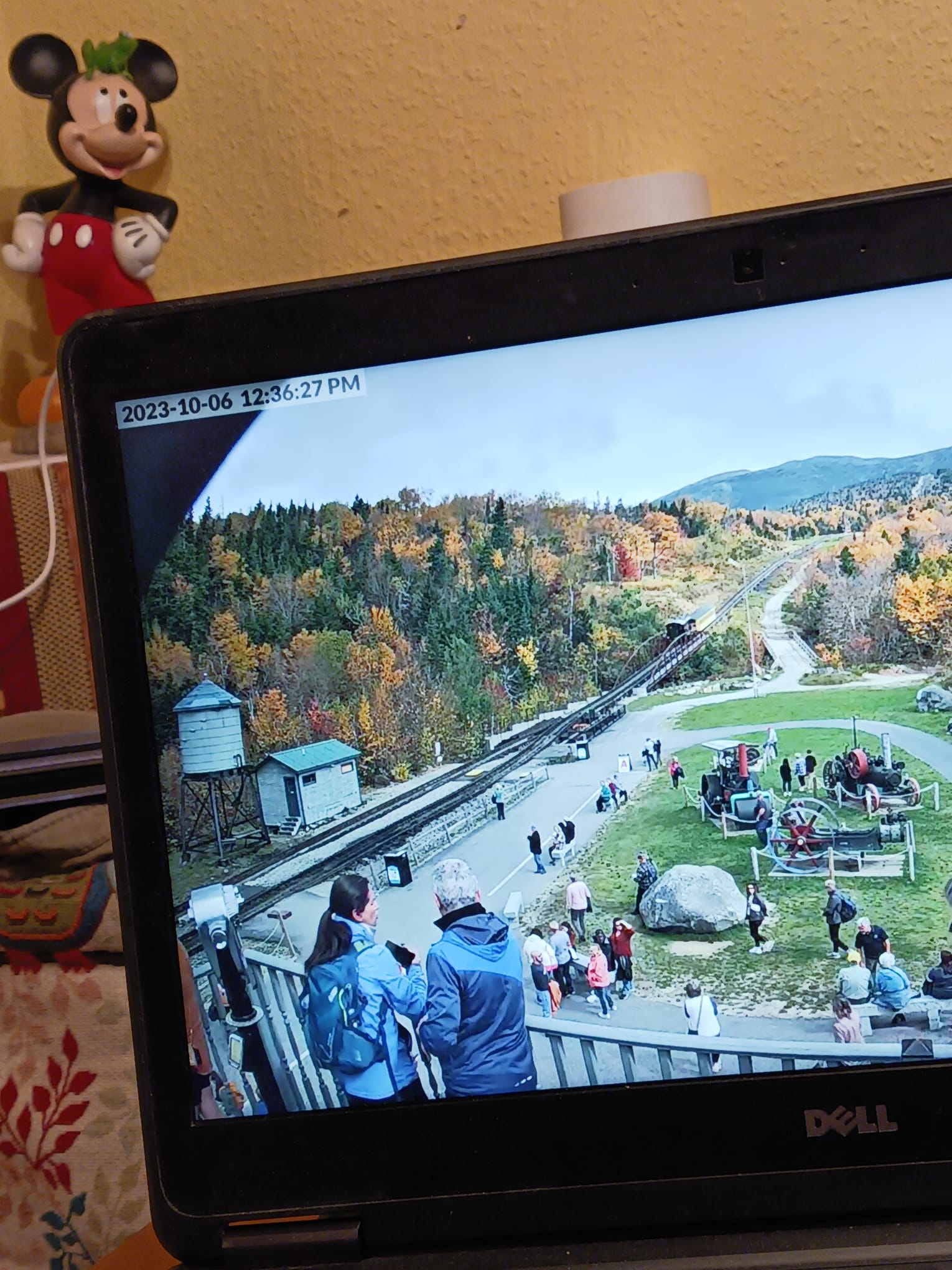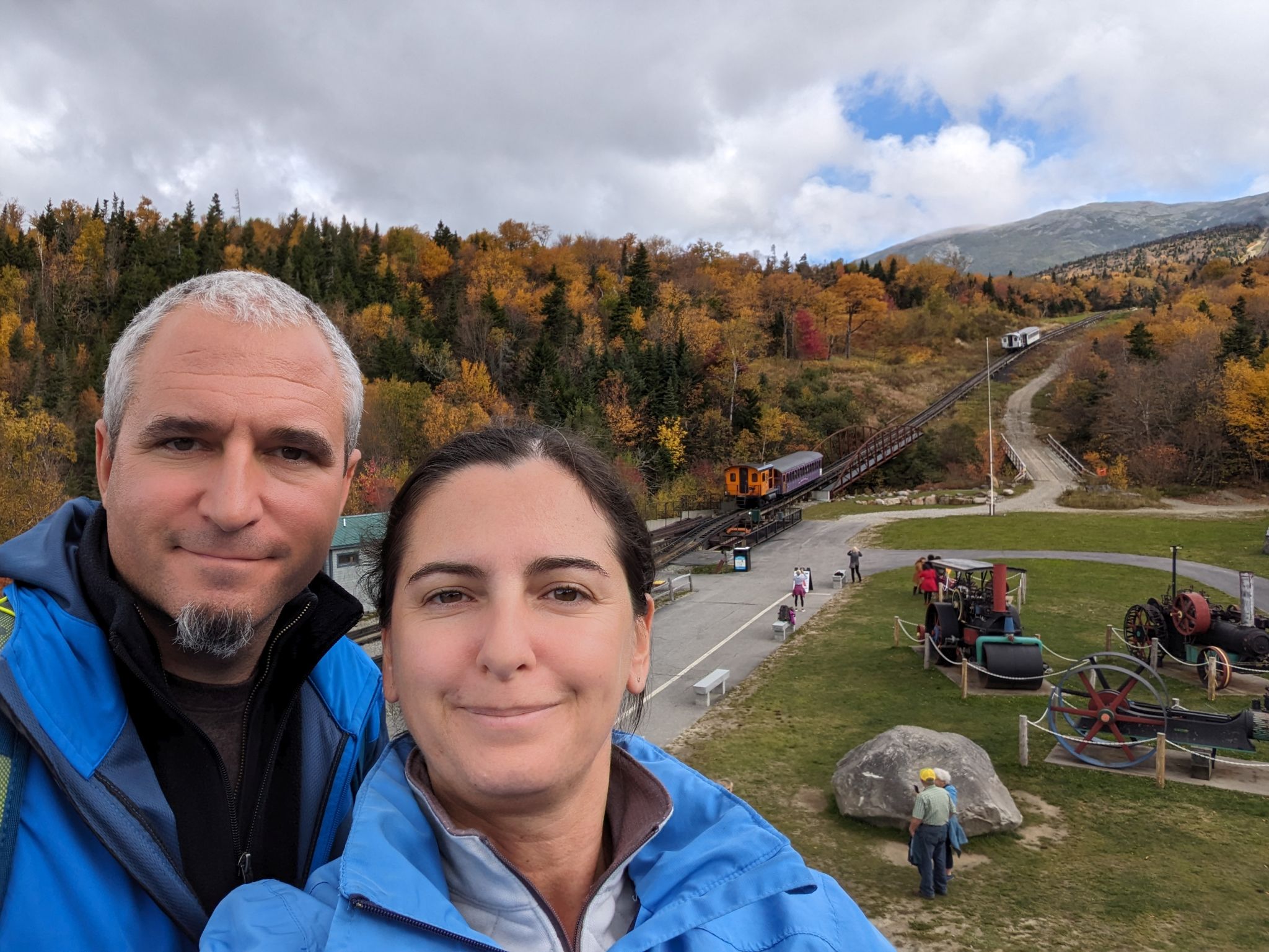 Es gibt 3 Wege hinauf: eine schweißtreibende Wanderung, eine kurvenreiche Autofahrt oder bequem per Zahnradbahn. Wir wählen die Mount Washington Cog Railway, welche die erste Zahnradbahn der Welt war. Unsere Lok ist grün und der Waggon Orange und unser Bremser und Entertainer ist Terry. Er erzählt uns während dem 40-minütigen Aufstieg alles, was es über die Bahn und den Mount Washington spannendes gibt.