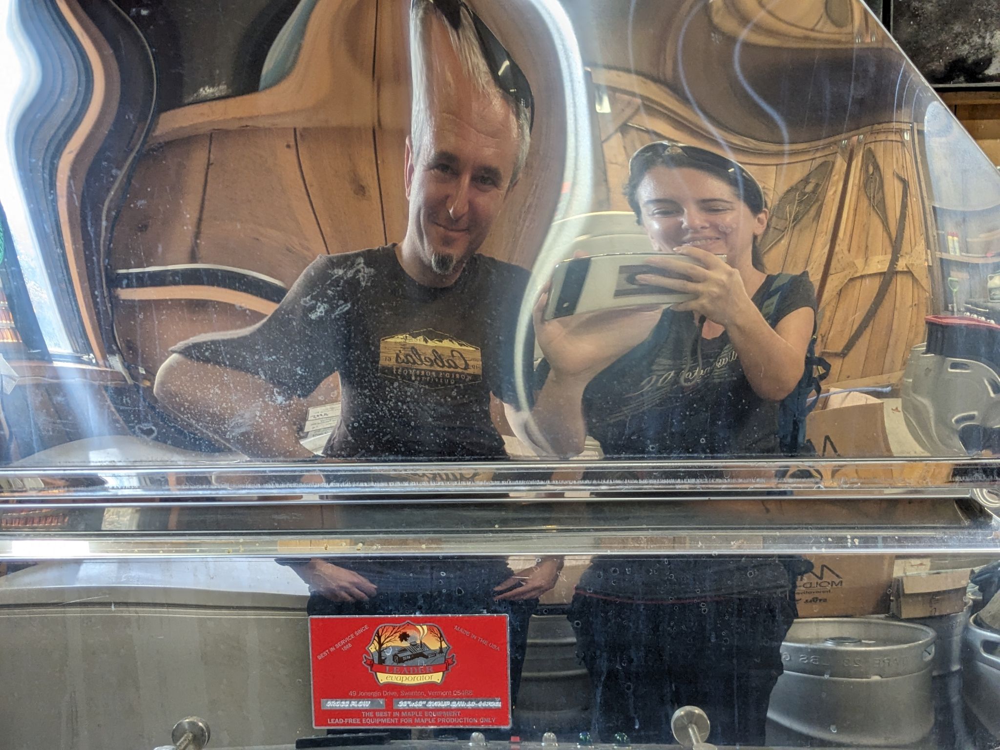 Auf der Presby’s Maple Farm bekommen wir eine Privatführung von Brad, dem Besitzer und seiner Frau Jo. Die Familie Presby stellt seit fünf Generationen Ahornsirup her. Es ist eine Familientradition, bei der alle, angefangen vom Saft sammeln bis zum Donut backen, beteiligt sind. Er erzählt mit sehr viel Leidenschaft über die Herstellung, seine Maschinen, die Probleme und Herausforderungen und lässt uns in seine Produktionsstätten schauen. Er beschreibt und zeigt uns auch die Unterschiede, wie sein Großvater die Bäume angezapft und den Sirup hergestellt hat und wie er es heute macht. Das ist alles sehr interessant!