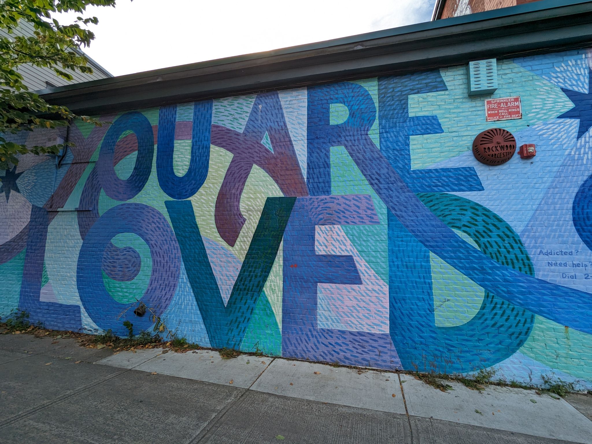 Dann spazieren wir an der Waterfront und finden einige wirklich schöne und vor allem große Graffitis.