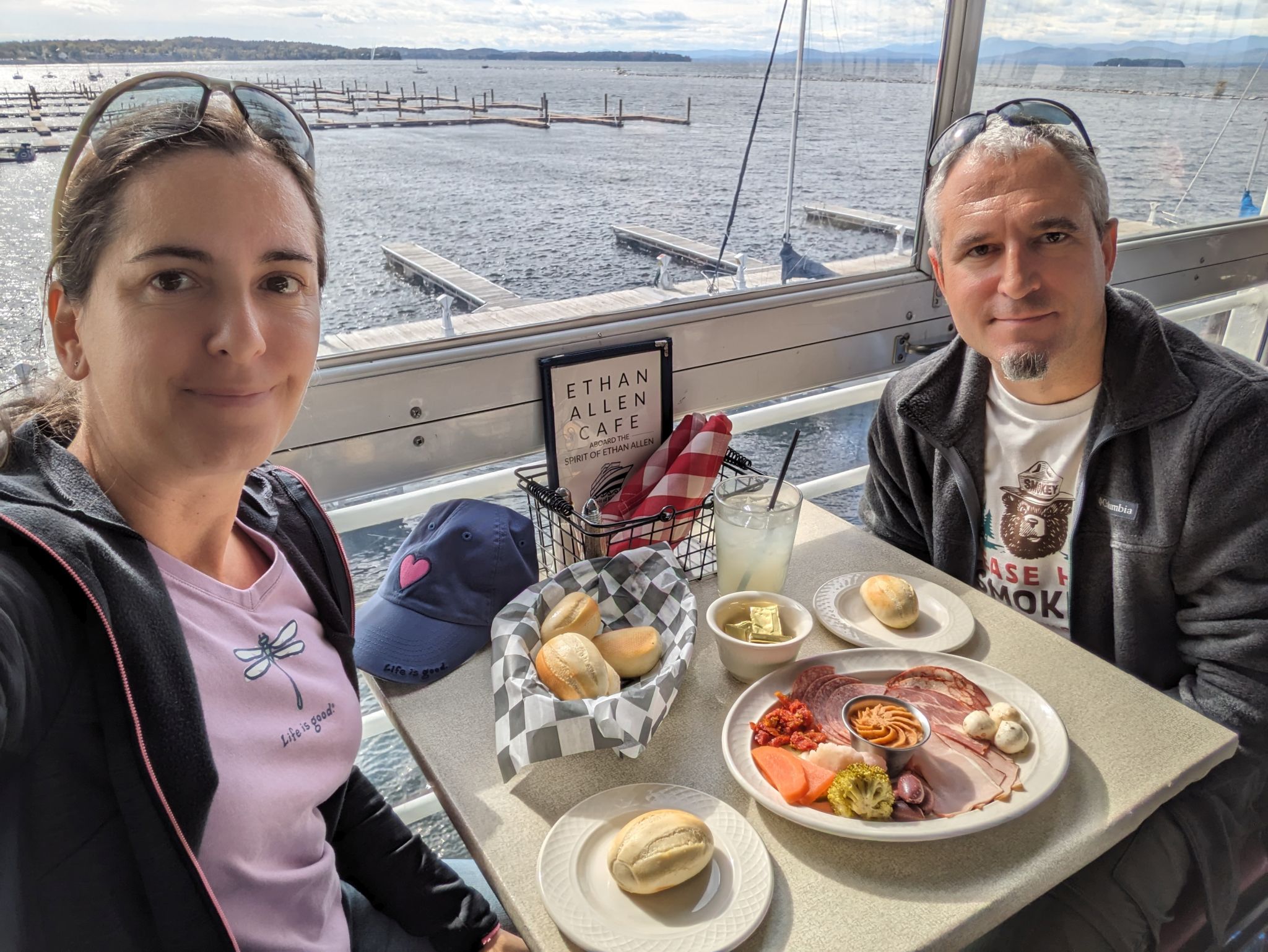 Wir machen eine Schifffahrt mit der Spirit of Ethan Allen und halten Ausschau. Währenddessen stärken wir uns an einer leckeren Antipasti-Platte.