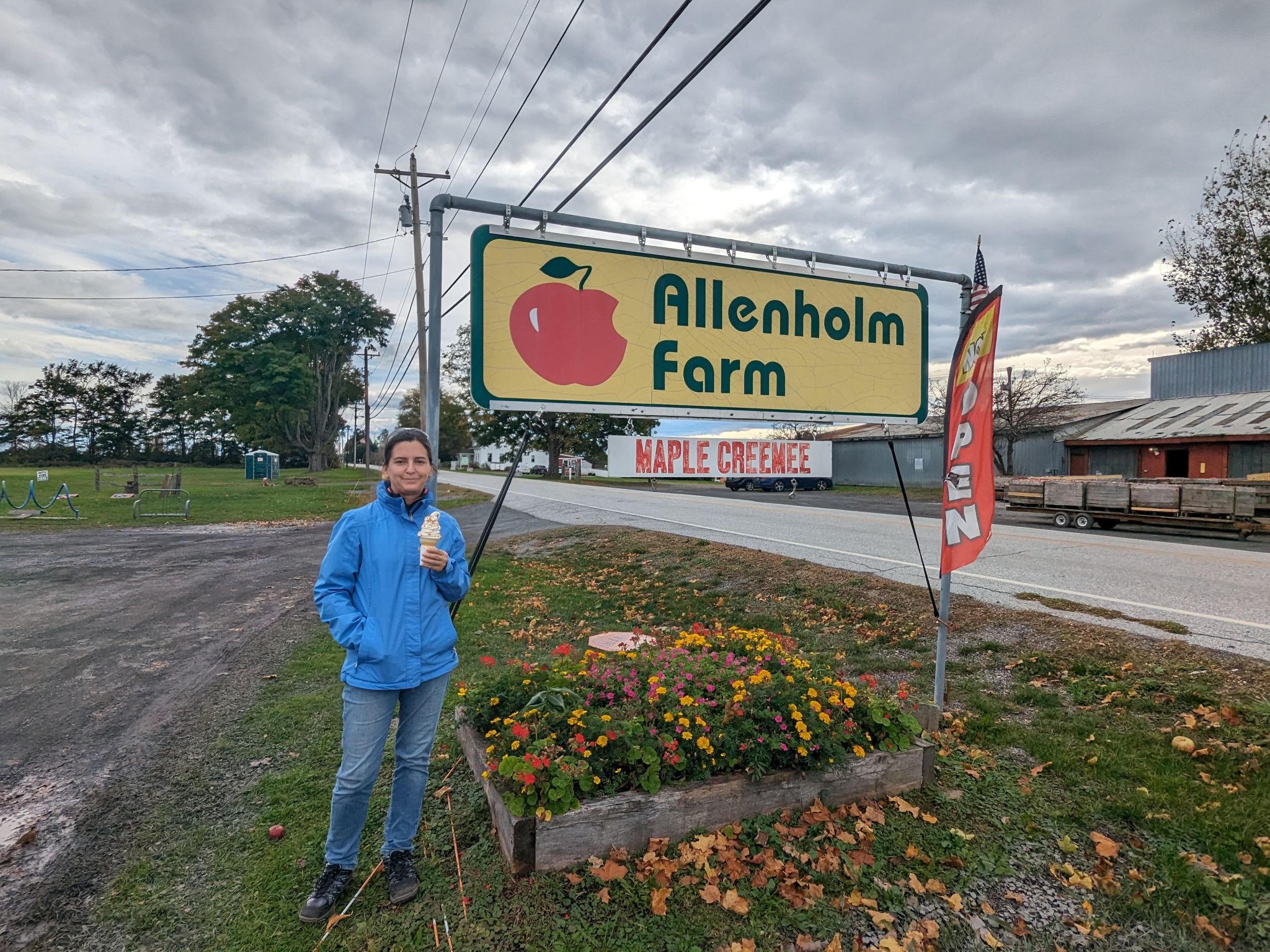 Wir fahren nur ein kleines Stück weiter auf die Allenholm Farm, dem ältesten kommerziellen Apfelgarten in Vermont. Er ist seit 1870 im Besitz der Familie Allen welche Apfelmus, gewürzte Apfelbutter, Marmeladen und Gelees aber auch frische Apfelkuchen herstellen. Ebenfalls bekommt man hier selbst produzieren Maple Syrup, der wie alles andere in einem kleinen Shop erworben werden kann.