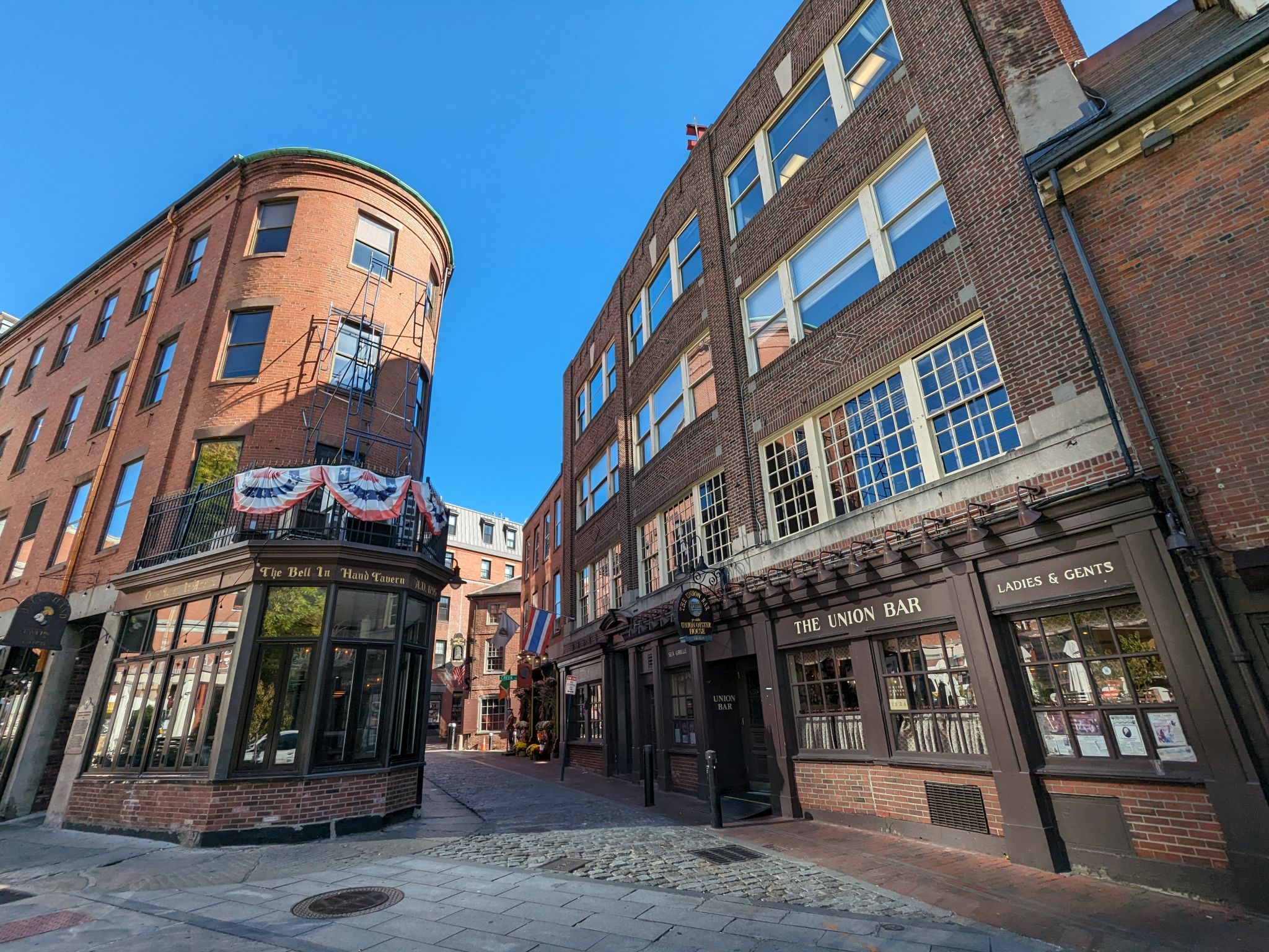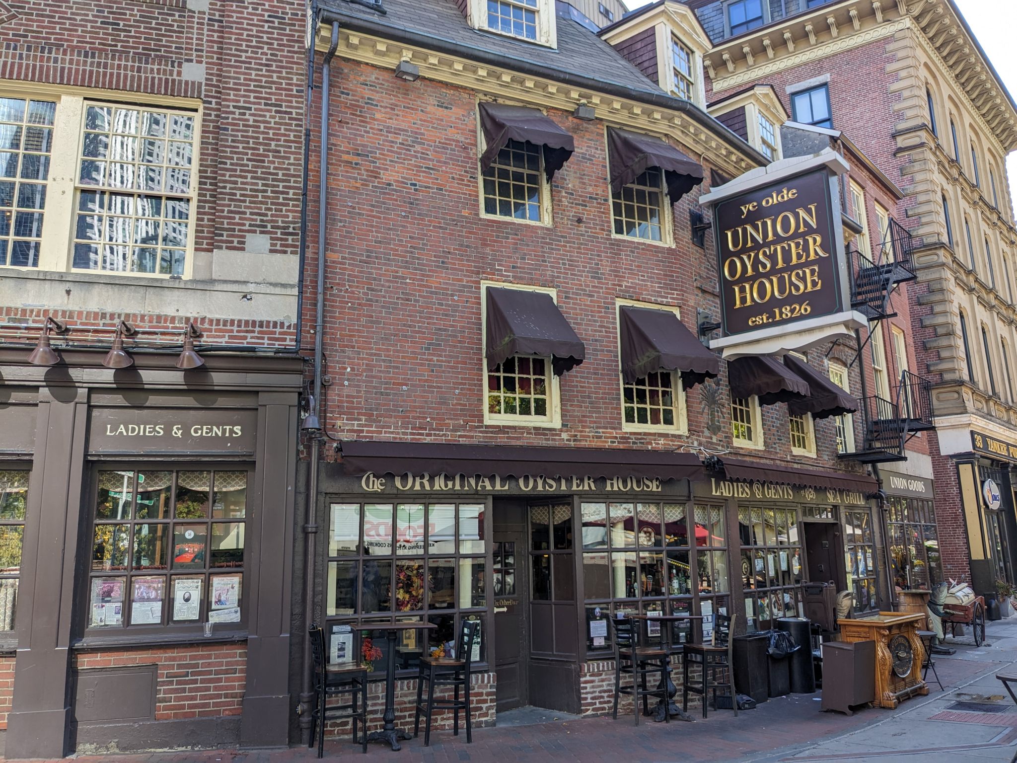 Nach einem Frühstück bei Starbucks wandern wir wieder entlang des Freedom Trails, diesmal aber Richtung Norden. Wir sehen das The Union Oyster House von 1826, Amerikas ältestes Restaurant, und gleich nebenan eine kleine Straße mit Lokalen und Geschäften, wie sie auch in London zu finden ist.