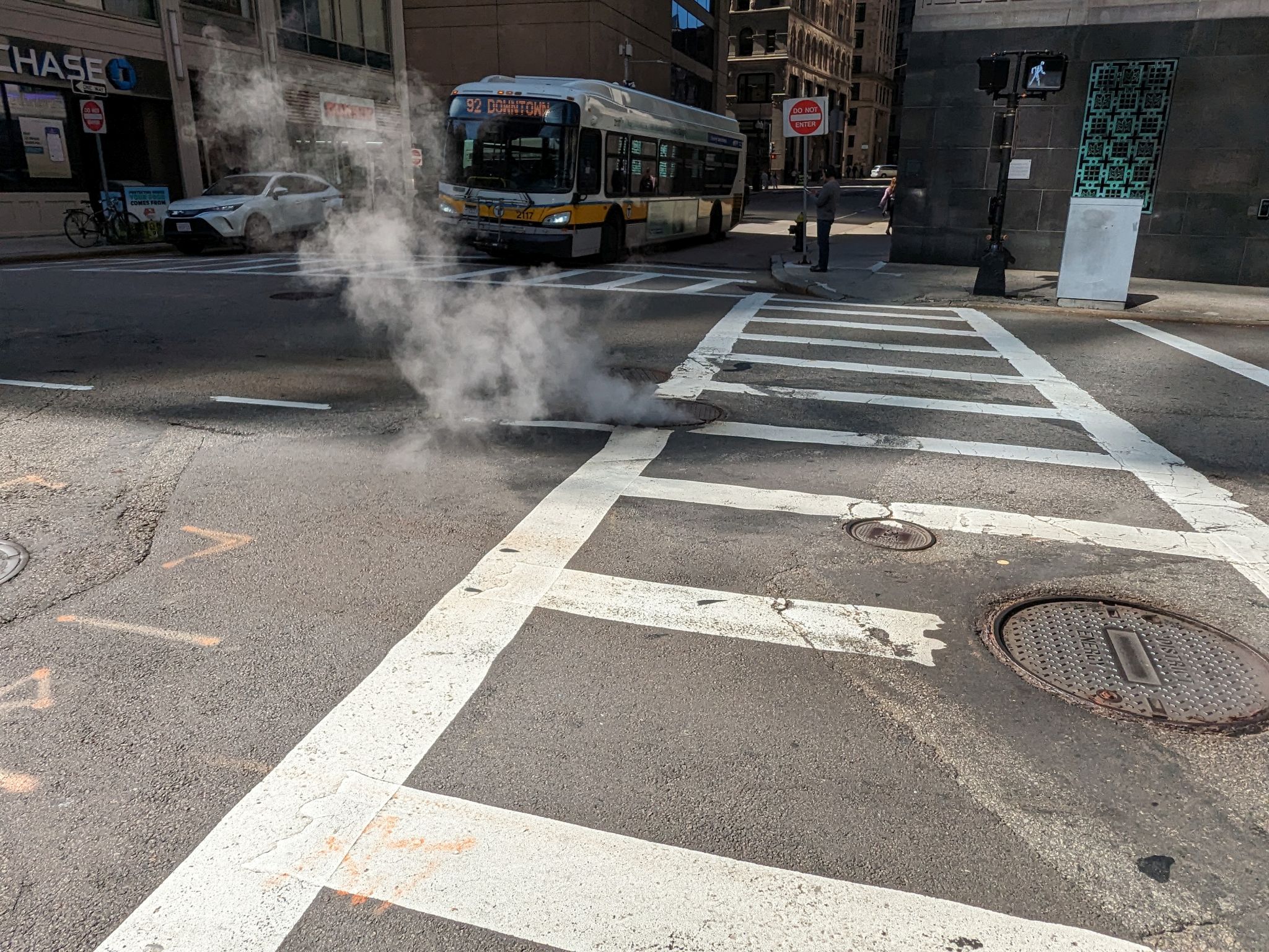Nach dem Ausflug in die Welt des Wissens fahren wir zurück nach Downtown, spazieren etwas durch die Innenstadt und bewundern die Hochhäuser mit den teilweise sehr verspielten Fassaden. Auch ein schön beleuchtetes Kino sehen wir und die qualmenden Kanaldeckel dürfen auch nicht fehlen.
