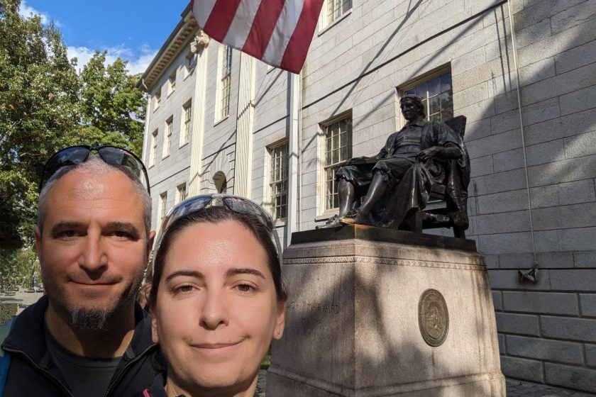 Zu guter Letzt kommen wir zu einer der meist fotografieren Statuen der USA von John Harvard. Hier wird uns erklärt dass sie auch „Statue der drei Lügen“ genannt wird. Die Inschrift „John Harvard, Founder, 1638“ ist die erste „Lüge“, da John Harvard nicht der Gründer der Universität war, sondern ein früher Spender nach dem die Universität später benannt wurde.