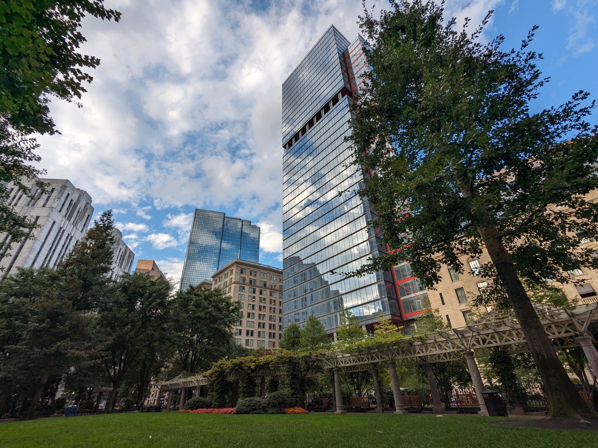 Wieder beeindruckend ist die Skyline. Die Hochhäuser mit ihren Spiegelfassaden und davor verspiele kleinere und vor allem ältere Gebäude. Dazwischen sind auch immer wieder kleine Parks zu finden, wo man kurz rasten kann.