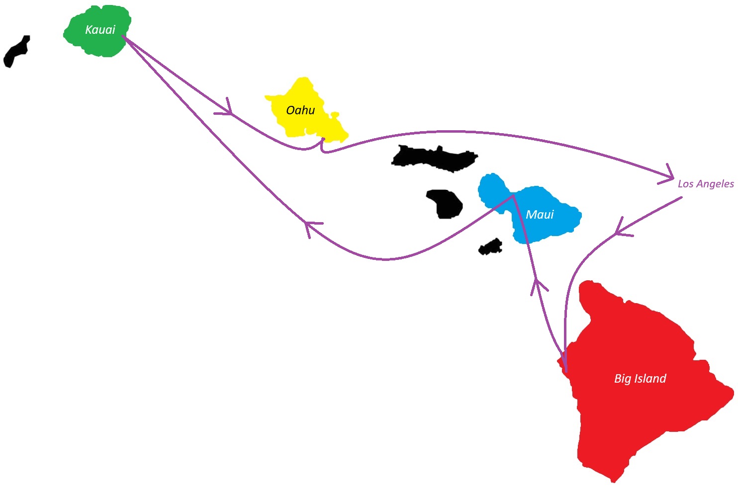 Dieses Mal wird es kein klassischer Roadtrip, da wir auf Hawaii 4 Inseln (Big Island, Maui, Kauai und Oahu) besuchen und auf jeder Insel ein oder maximal zwei Unterkünfte haben. Somit können wir die Inseln meinst von einem zentralen Ort aus erkunden und unser Tagesprogramm etwas offener lassen und mehr vor Ort entscheiden.