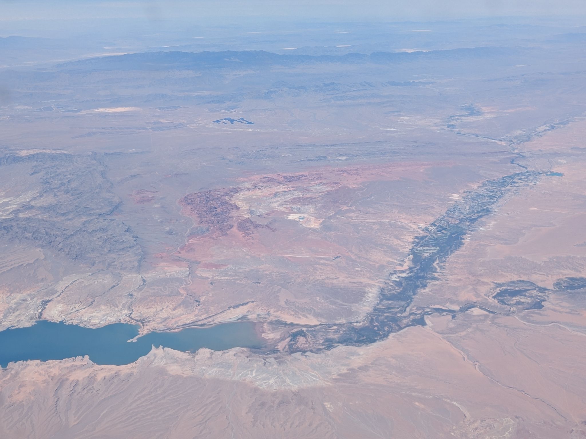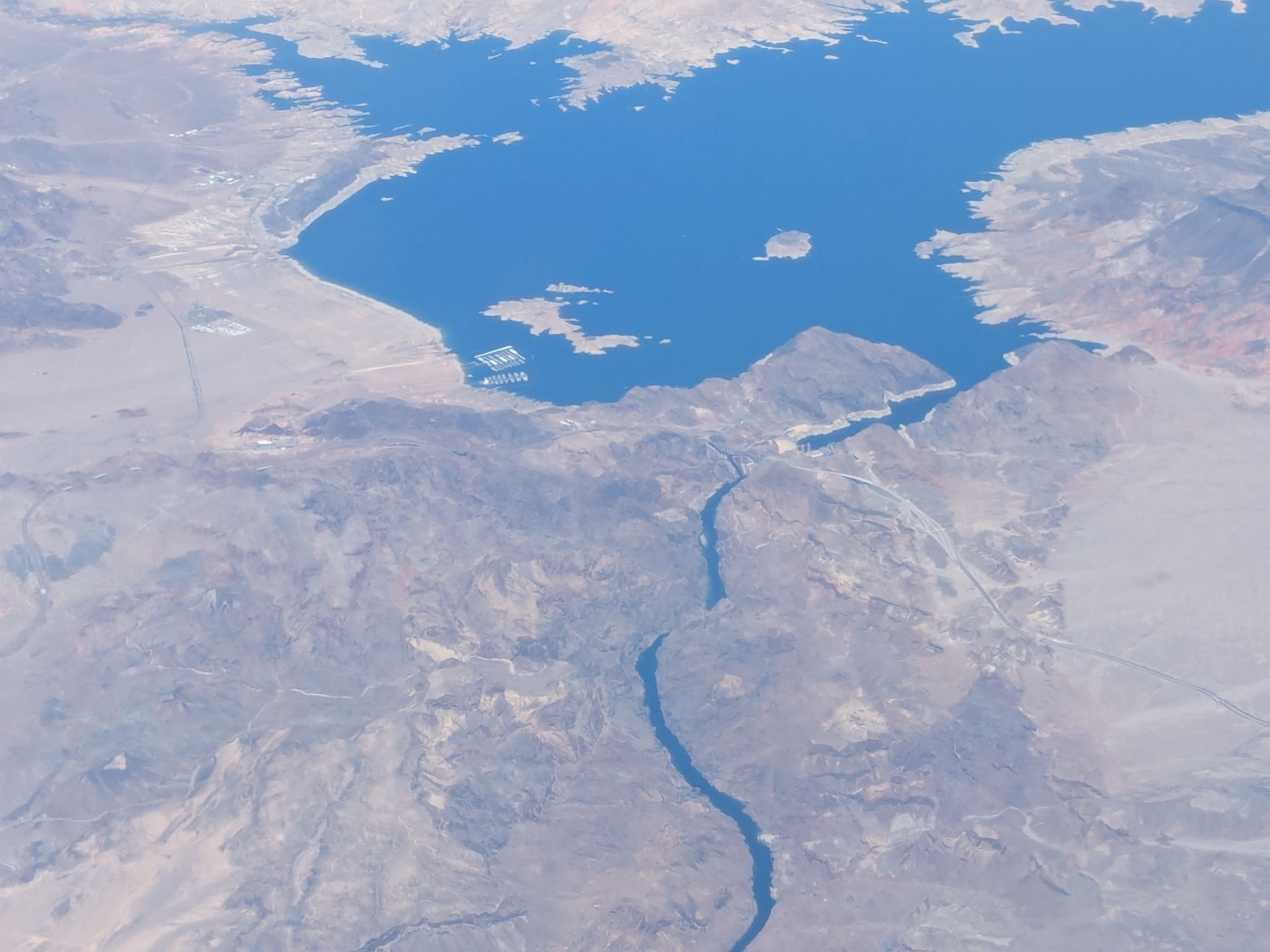 Kurz vor der Landung dann das andere Extrem: Wüste. Wir erkennen das Valley of Fire, den Hoover Damm und selbstverständlich Las Vegas.