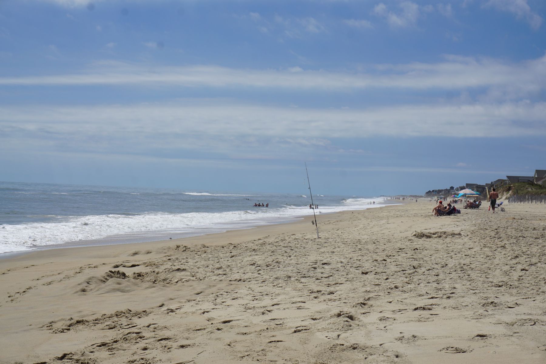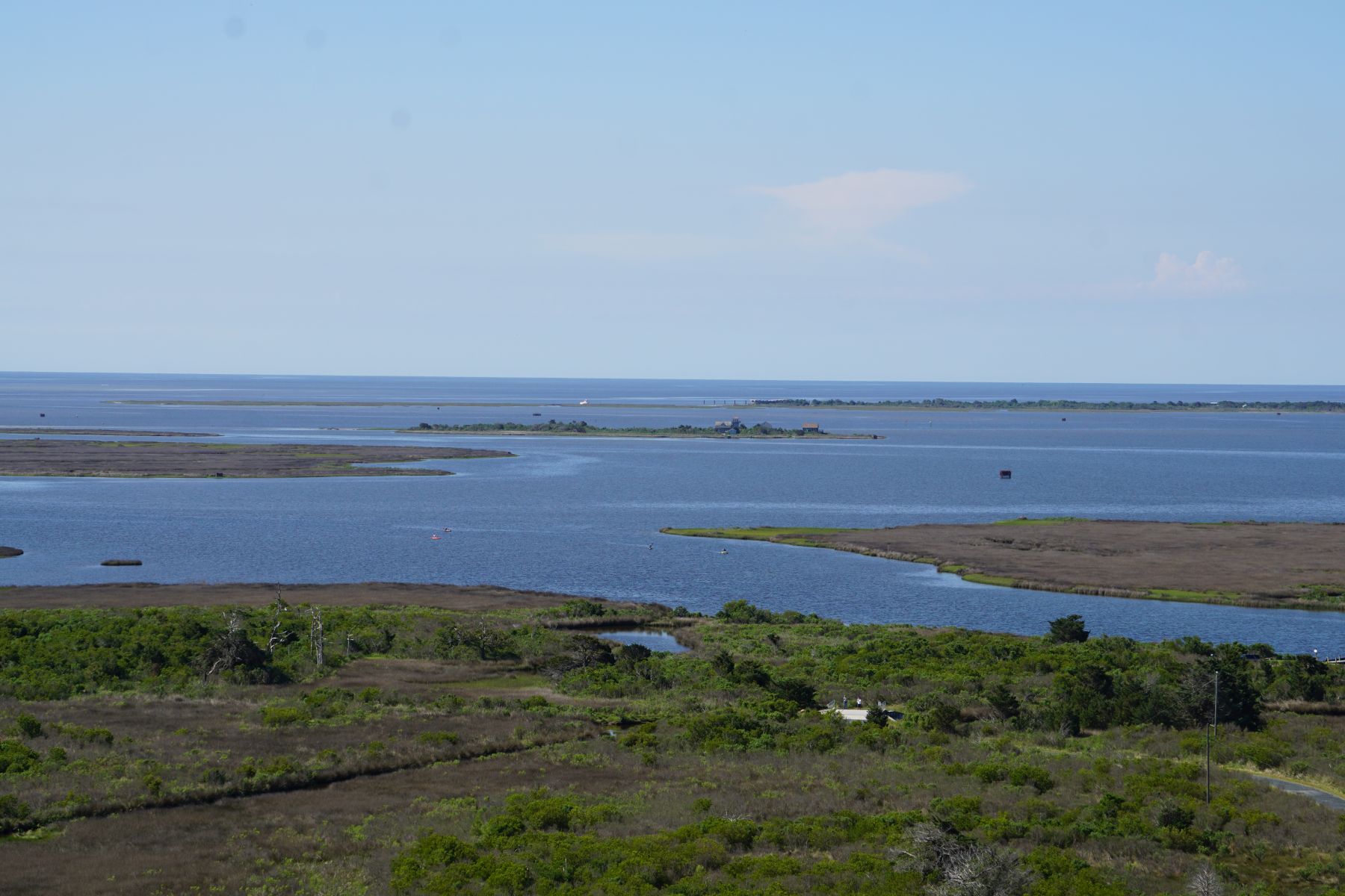 Nach einem Frühstück auf der Terrasse unseres Hotels geht es die Outer Banks Richtung Süden entlang. Das ist ein schmaler dem Festland vorgelagerter Inselstreifen. Wir haben links Sanddünen und dahinter das Meer, rechts Sumpflandschaft und ebenfalls das Meer.