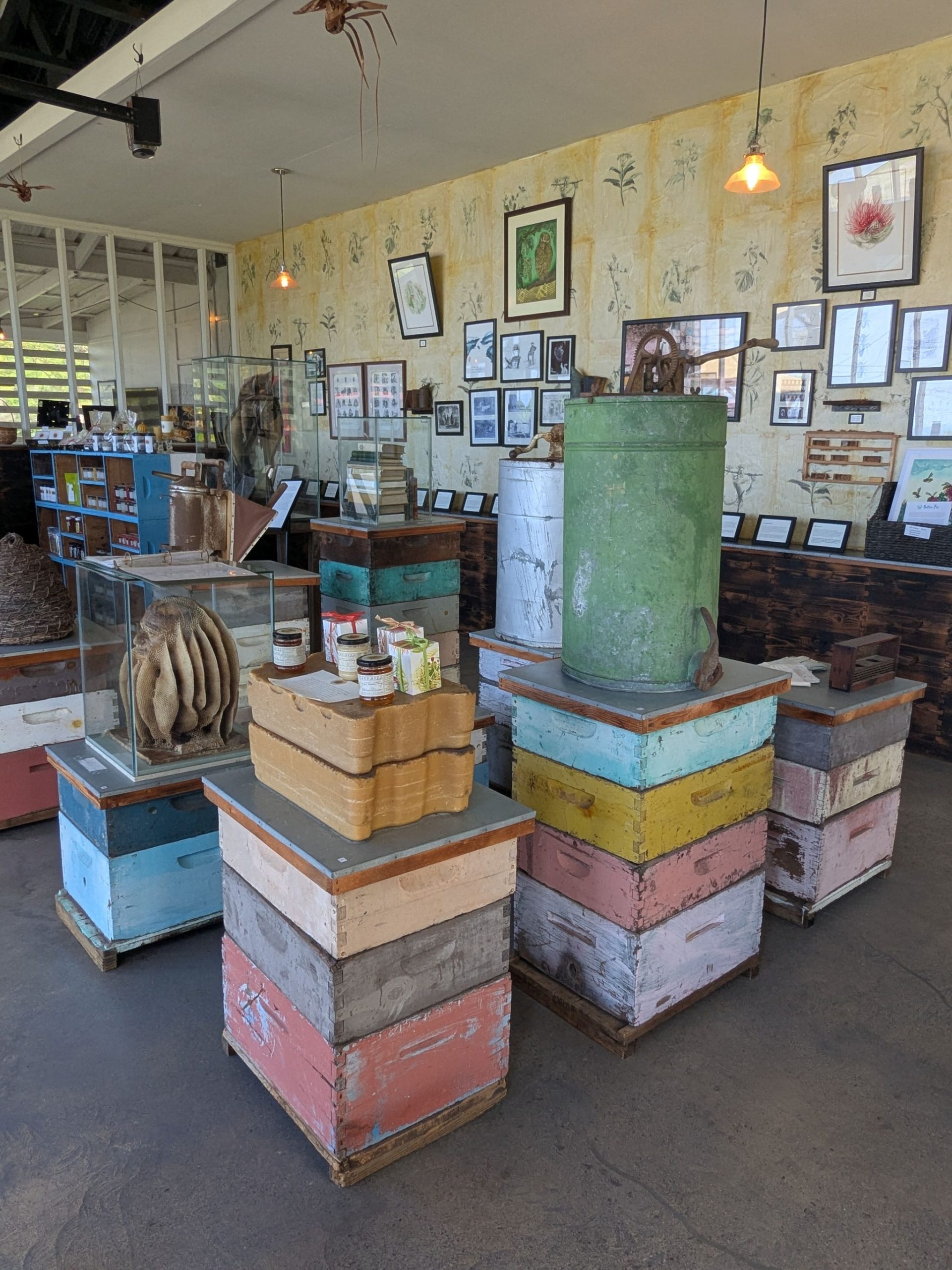 Wir haben in den letzten Tagen bereits ein Glas Honig von Big Island Bees verspeist, darum wollen wir uns mal ansehen, wo der Honig her kommt. Leider erfahren wir, dass die Tour erst in über einer Stunde startet, da haben wir aber bereits einen anderen Termin. Also sehen wir uns nur im Museum um und erfahren auch so einiges über die Bienen und Honigherstellung. Aktuell gibt es auf der Farm 2.500 Bienenstöcke und ca. 125 Mio. Bienen.