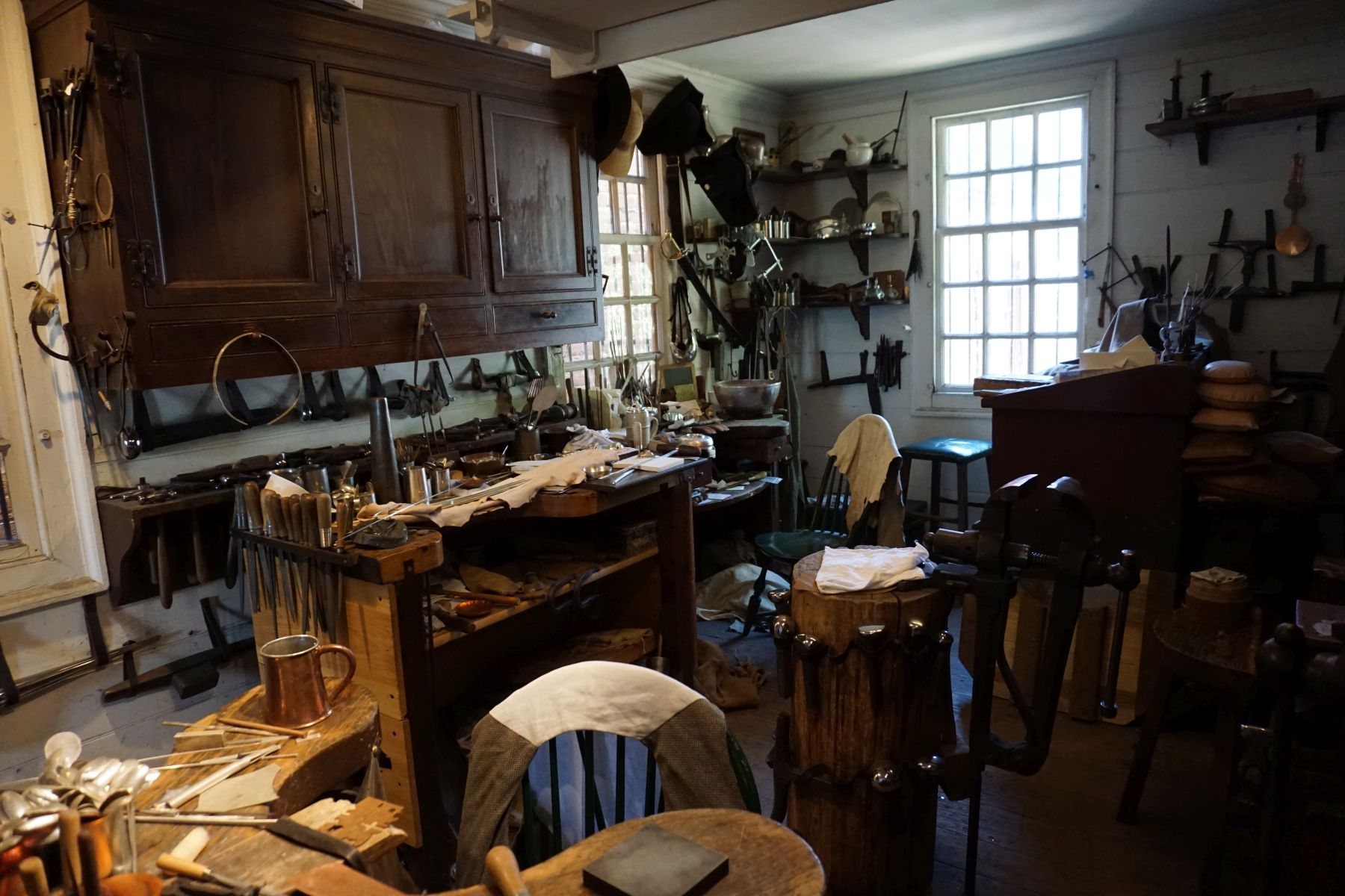 Colonial Williamsburg ist nun ein riesiges Freiluftmuseum, das Einblick in das Leben in einer früheren nordamerikanischen Kolonie gewährt. Schuhmacher, Buchdrucker, Buchbinder, Schmiedemeister, Schuhmacher,… demonstrieren in zeitgenössischen Gewändern alte handwerkliche Tätigkeiten.