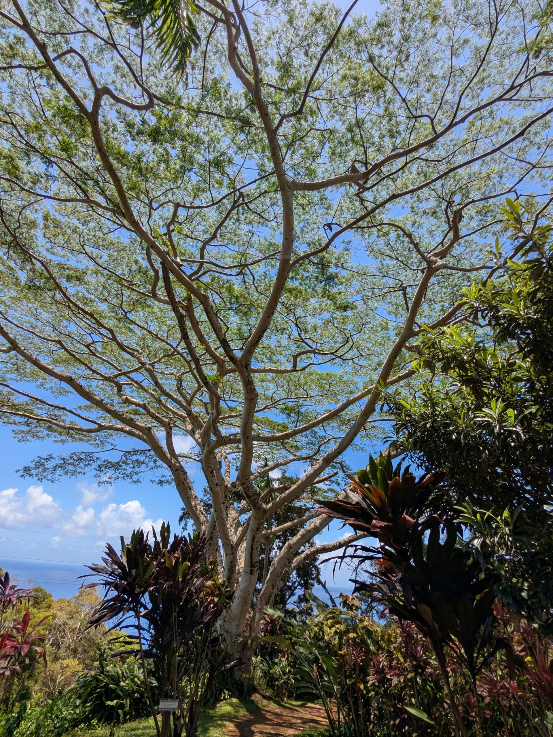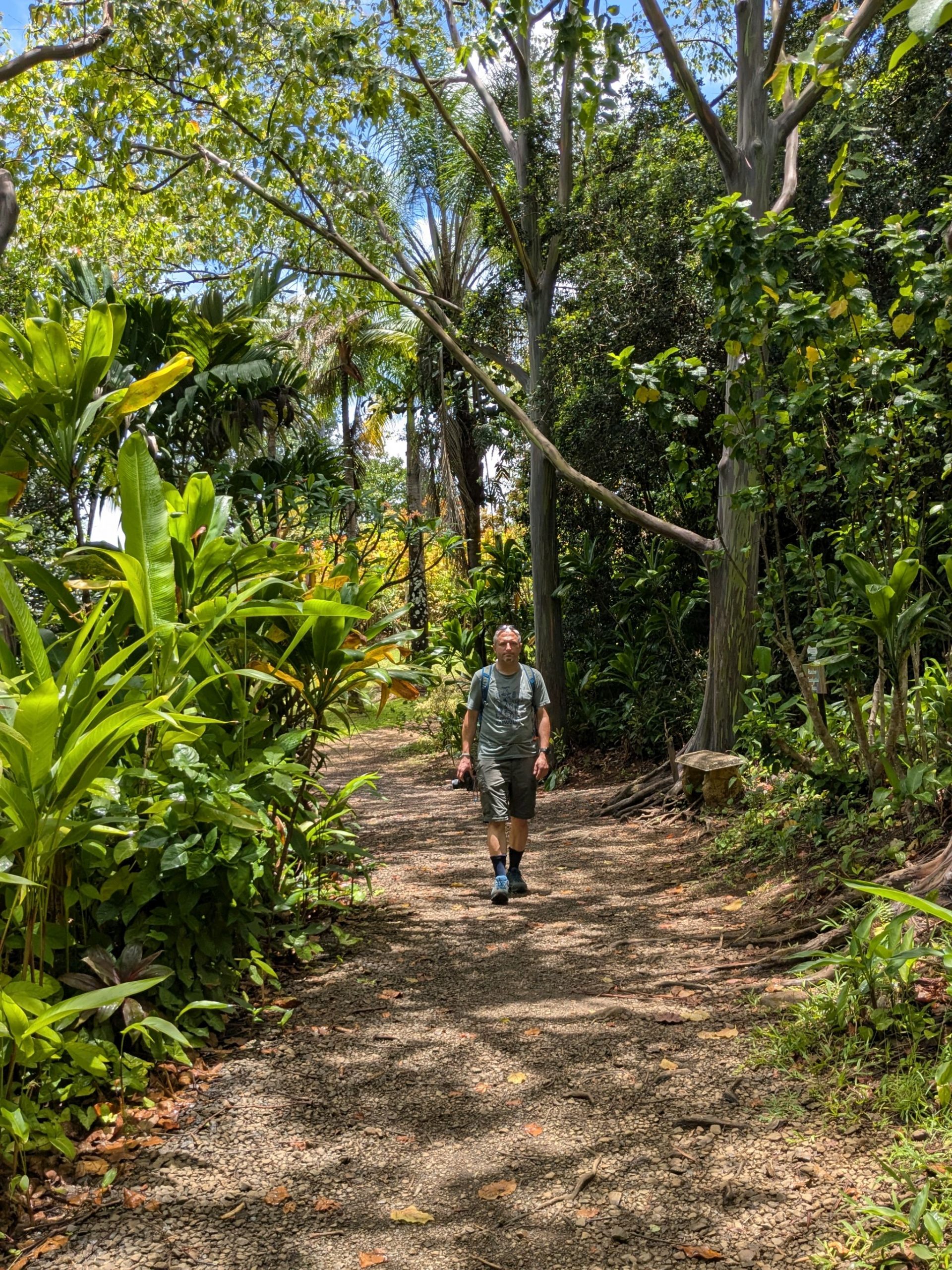Erster großer Stopp ist im Garden of Eden Arboretum. Ein Garten, der über Trails erkundet werden kann und viele einheimische, aber auch eingewanderte Pflanzen zeigt und erklärt. Darunter ist auch ein über 100 Jahre alter Mangobaum. Empfangen werden wir aber von einem wunderschönen Pfau.