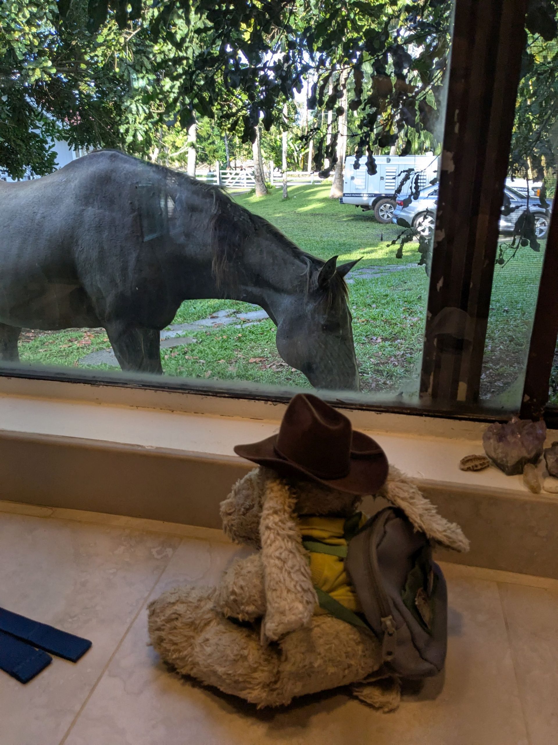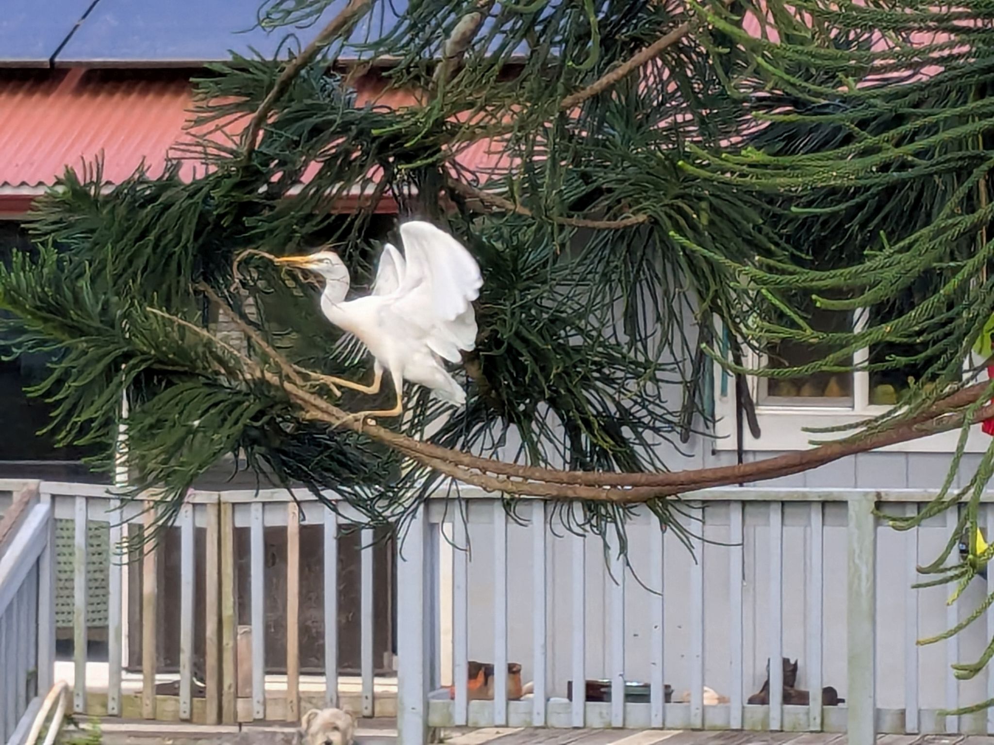 Die Silberreiher scheinen sich auch sehr wohl zu fühlen, denn sie bevölkern die beiden hohen Bäume auf der Farm.