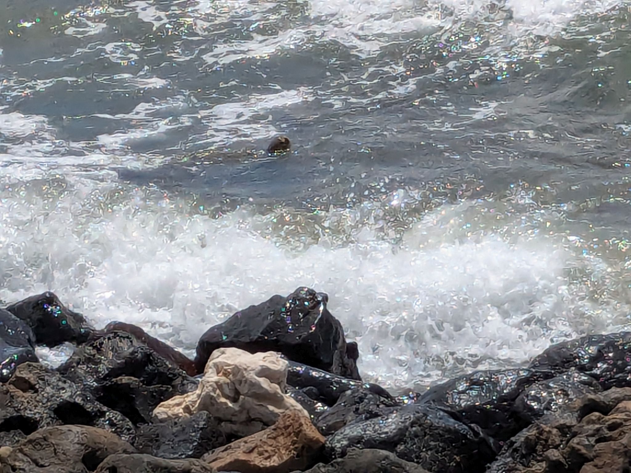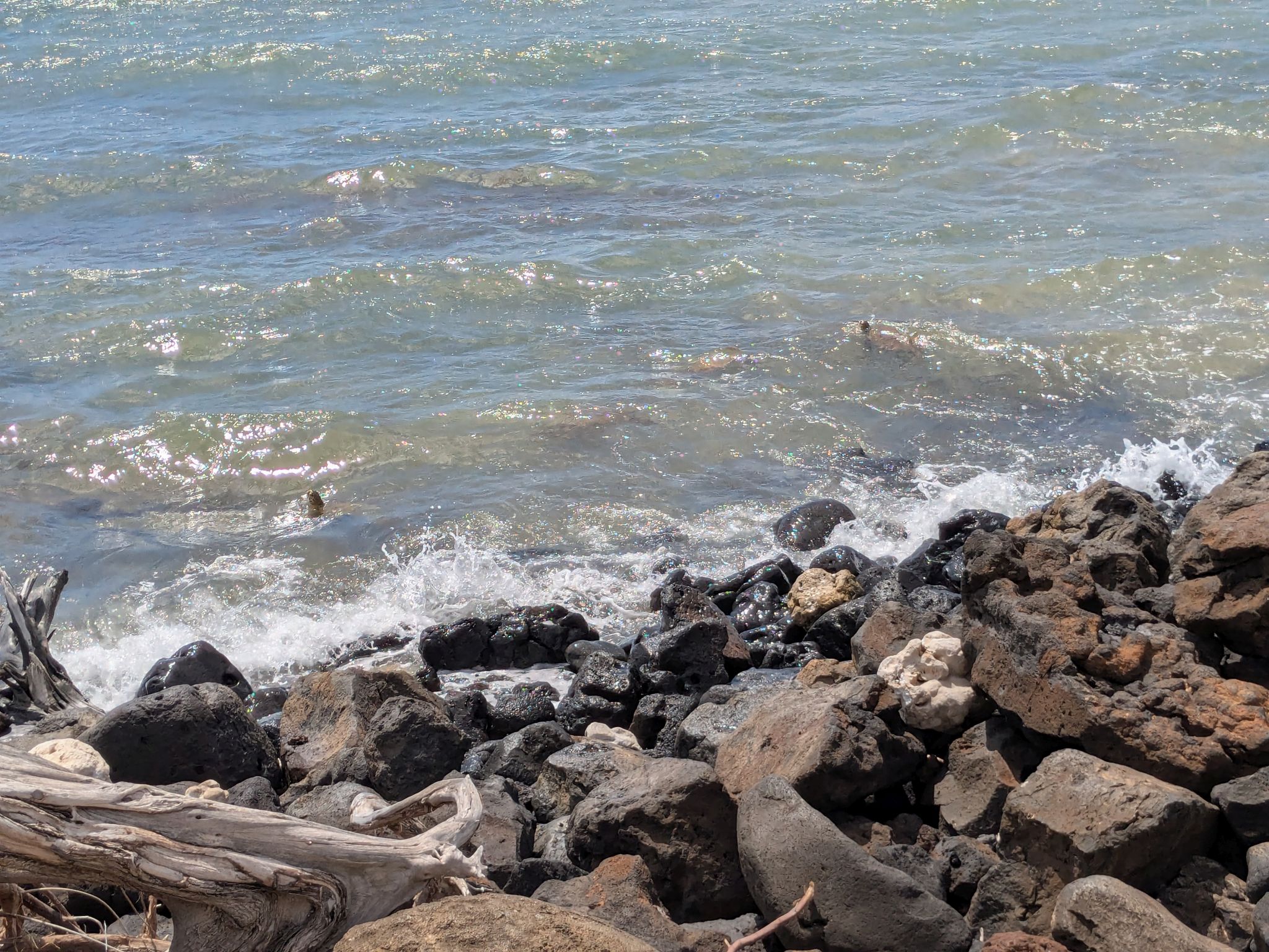 Kurz wollen wir noch den Weg der Schildkröten nachgehen und haben Glück. Bei den großen Steinen tummeln sich mindestens sechs Schildkröten. Ein paar Schnappschüsse konnten wir machen (Zoom notwendig!).